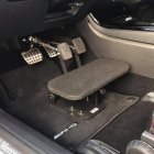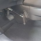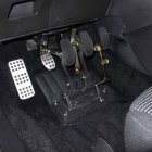 La pedalera D999 de la marca Guidosimplex se conecta a los pedales originales para modificar la posición del embrague, freno y acelerador para adaptar la conducción a la persona que lo necesite. El dispositivo está montado en una plataforma que eleva los pedales para facilitar su uso por el usuario.